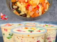 Esta refrescante Bebida de Gelatina de Tapioca con Fruta es una deliciosa y colorida golosina perfecta para cualquier ocasión. Combinando gelatina, fruta, nata y perlas de tapioca, es